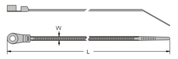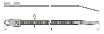 | Item No. | Length L | Width W | Hole dia. | Max. Bundle Dia. | Min Loop Tensile Strength | Packing | |||||