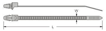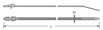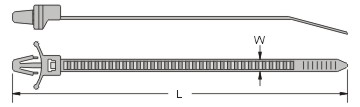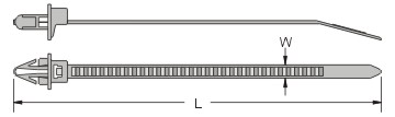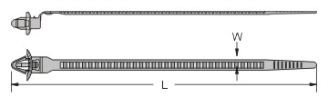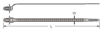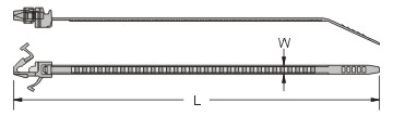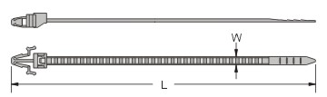 | Item No. | Length L | Width W | Max. Bundle Dia. | Mounting Hole | Chassis Thickness | Min Loop Tensile Strength | Packing | |||||