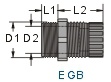 | Item No. | Thread | Mounting Hole | D1 | D2 | B1 | L1 | L2 | L3 | Cable Range | Packing | |||